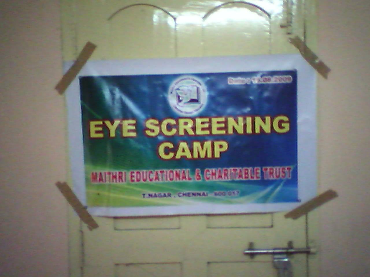 August 2009On the 16th of this month, Maithri conducted a free eye-camp in cooperation with Rajan Eye Clinic, T.Nagar. 46 students and their parents availed this opportunity and of which about 7 students were called in for a follow-up for spectacles. Maithri thanks Rajan Eye Care Hospital for their methodical screening tests. Our thanks to the excellent service rendered by the surgeon and optometrists. Every attending member was provided with packed lunch which was generously provided by Mr. Gopal of Geeta Cafe, T.Nagar. Ms Sowmya Simhan and Mr Srinivasan of Sukruthi Social Foundation participated actively in the camp. The following Saturday was spent in taking the children for follow-up visit to the doctor. Appropriate eye-glasses were donated to the students who were prescribed spectacles. Some photos from that occasion - |