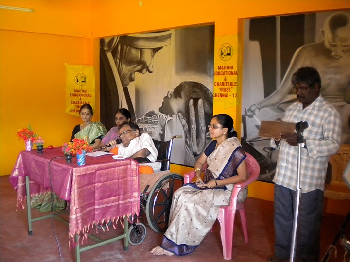 In the month of October, Maithri participated in three major programs involving children. Maithri participated at Avvai Home where The Aseema Trust (a NGO) performed a music and dance programme with the students of Avvai Home, Chennai. The dance was choreographed by V.R.Devika (Aseema Trustee) and musical rendition by Bombay Jayshri.. Giants Group of Chennai Main (another NGO) conducted series of service oriented programmes. On 26th October, Maithri took part in their fund raising drama by Crazy Mohan in Vani Mahal, T. Nagar, Chennai. Giants Group of Chennai is the main provider of school uniforms to Maithri students since 2006. On 26th October, Maithri took part in the closing function of training workshop for transgenders in Chennai. The transgenders underwent karate training to improve their self-confidence and general health. The six-day training session, also included other kinds of physical strength exercises like yoga, meditation and a personality development session. Under the auspice, 'The Kara Gender Capsule', about 100 or more members of transgender community are being trained by Reshma Sharma, a qualified instructor. The training was jointly organized by Dojo Chakra and Maithri Educational and Charitable Trust with the assistance of the Tamilnadu Aids Control Society and the G7 Group of companies. Hon. M.P. Ms. Kanimozhi Karunanidhi was the chief guest for the valedictory function. Some photos from that occasion - |