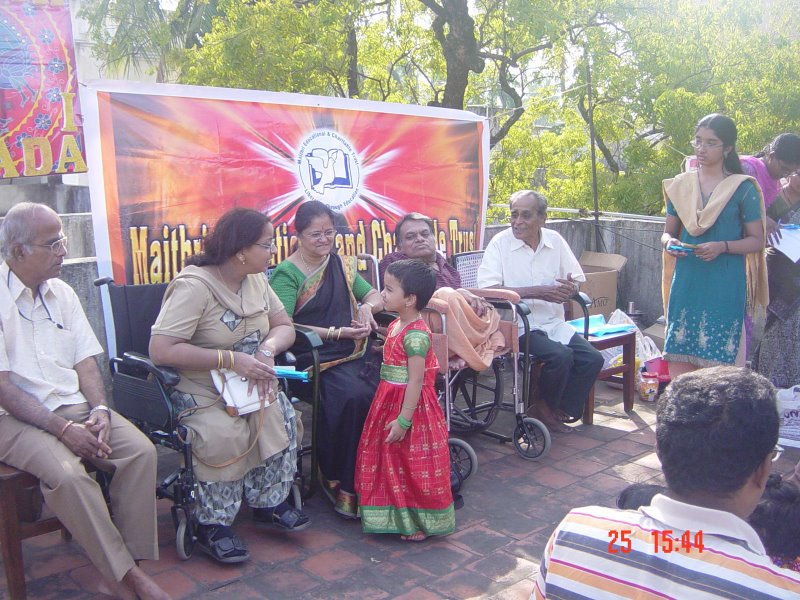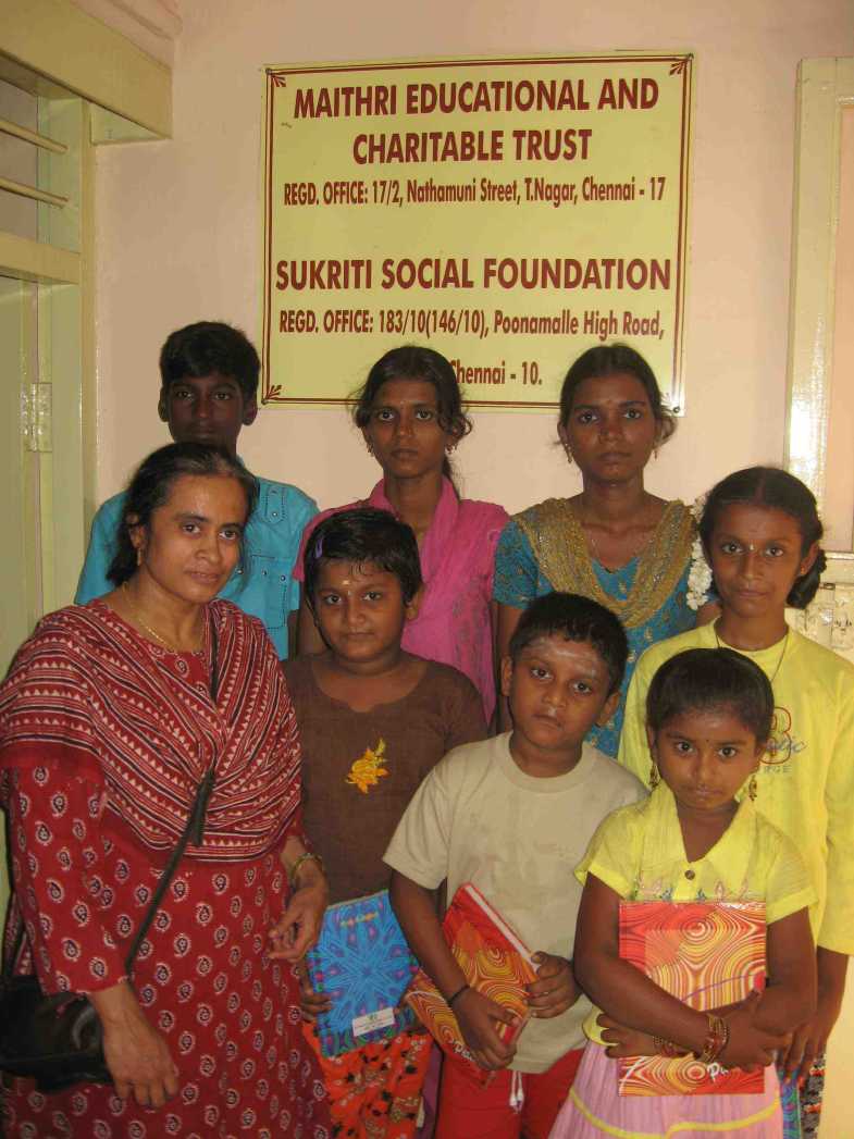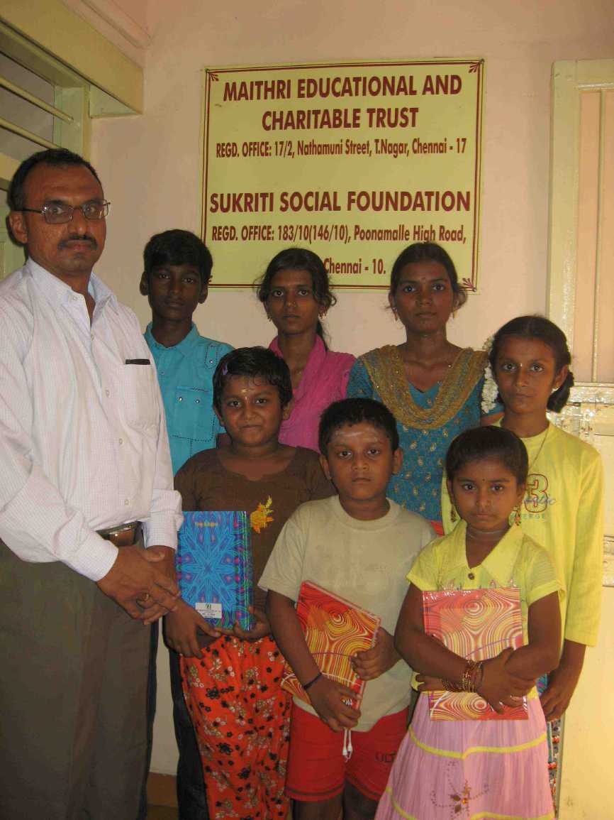 October 2009Deepavalli, the festival of lights was celebrated by Maithri with 20 most needy children. They were provided with new dresses and fire-crackers. This was made possible with the support extended by Sri Kumaran Silks of Panagalpark and Mylapore, Chennai. Both the shops gave away free dresses to Maithri students (churidar sets and gowns for girls and shirts for the boys). A special thanks to Mrs Manju for introducing the benevolent Kumarans to Maithri.