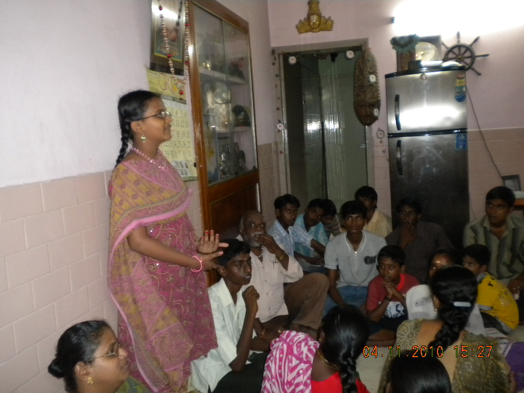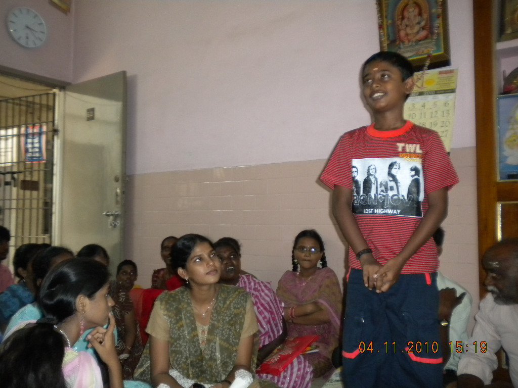 January 2010Maithri began the year of 2010 by greeting donors, members and students. Special thanks to Madam Principal, St. Marks School, Adyar, Chennai for her extraordinary gesture, donation of an excellent collection of story books in mint condition to Maithri. Maithri also thanks Mr. Subramanian for donating college text books to all our students from his book bank. He also gave away dictionaries, long notebooks and self and life-improvement books to our students. Maithri has extended a unique and useful facility for students to learn 'Spoken English' and 'Personality Development' courses by conducting weekly class (on Sundays) from 10th January. Maithri gratefully thanks Mrs S.Rajalakshmi who, not only teaches for free but also provides space for conducting these classes (see pictures below).