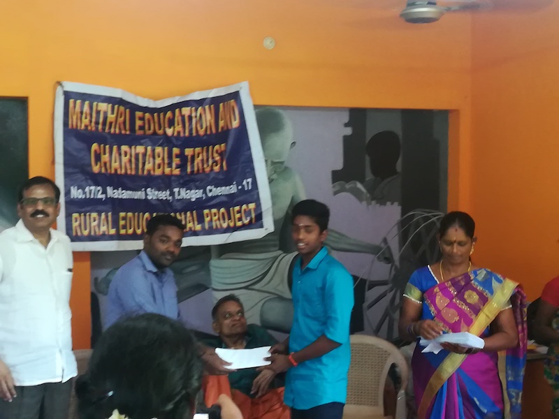 July 2019Students sponsored by Maithri have come out with 100% pass rate for X, XI and XII exams in the 2018-2019 academic year. The XII grade toppers are Pavithra M, Shai Sudha and Aravindh R and the X grade toppers are Prasanna S, Eashvar S and Bandaru Sai Karthik. The XI grade toppers are Vignesh R, Salla Gautham and Lithin P. On July 10th, Maithri students with parents, tutors and founder trustee visited Kalanjiyum trust. Maithri gave away cheques to the 27 Kalanjiyum students who are recipients of sponsorship from Maithri. The parents and students from Maithri gave half hour talk on their experience and the latest trends and interests. The group had a nice lunch session and enjoyed the village atmosphere: the gentle breeze and greenery. |