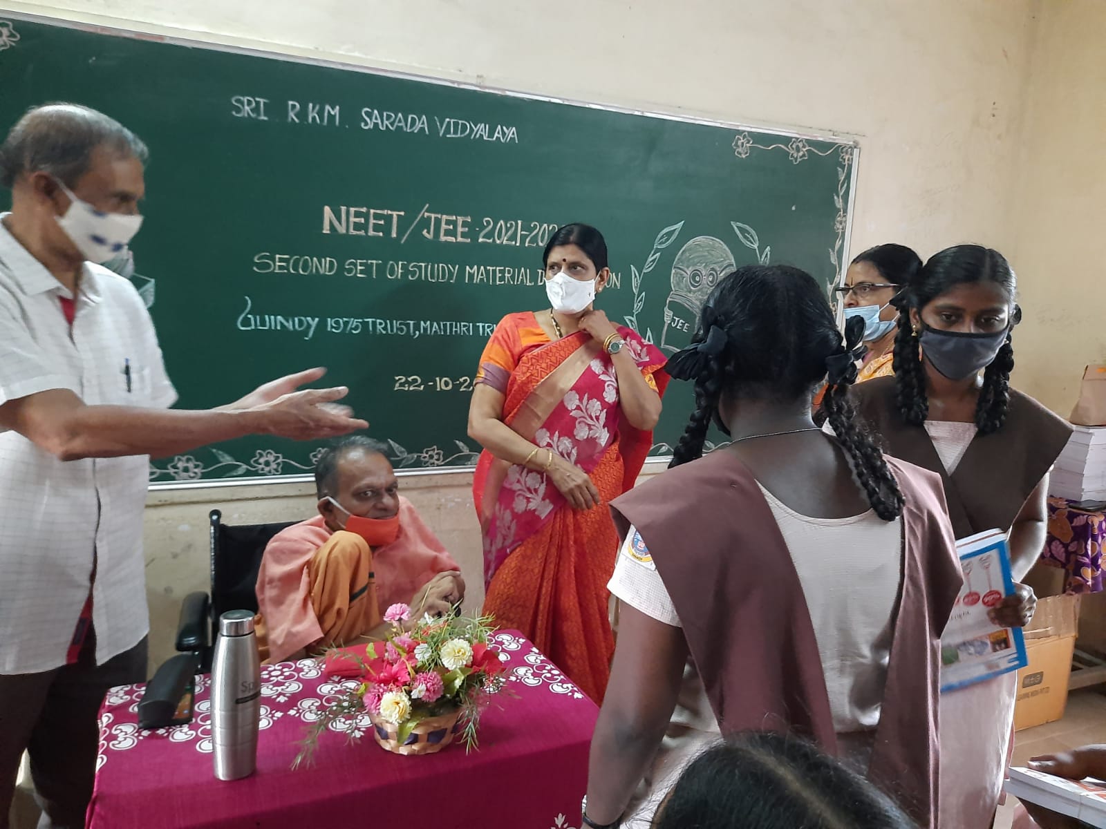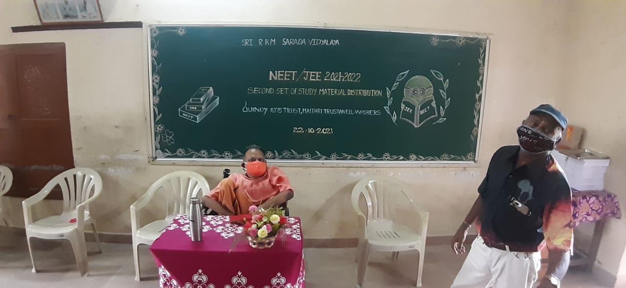 April 2021Free NEET and JEE coaching classes were requested by RKM - Sarada Vidyalaya Girls High School similar to the Boys School. Maithri have had previously worked with the Girls school and have had a positive experience. The Girls school plan to begin classes, in a month or two, for the 12th students appearing for 2022 NEET and JEE Entrance tests. 30 students have already enrolled for these classes. The GuindyTrust has agreed to provide course materials free of charge and Maithri provide funds for other expenses. March 2021On 21st March, Maithri was invited by Giants Group of Chennai Pushkar as the Chief Guest in the Valedictory for 2020-2021 at Ramaniyam Pushkar, Sholinganallur (Suburb of Chennai). Here Maithri addressed the inmates and received a cheque from the International Service Organization. On 23rd March, Sri Ramakrishna HSS (Main) launched free coaching classes for NEET and JEE-IIT entrance examinations for students appearing for these competitive exams for the current academic year. 52 students from the three RKM schools and 15 from other schools within the T Nagar area benefit from these classes. These coaching classes are sponsored jointly by The Guindy-75 Trust and Maithri Educational and Charitable Trust. Mr. Sridhar Rajaram, Maithri's Founder Trustee, addressed the students and text books and evening snacks were provided. |
