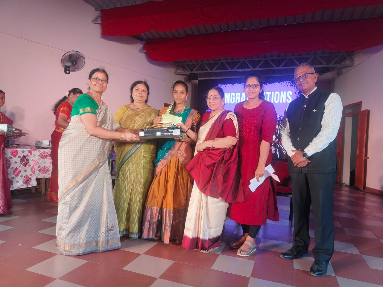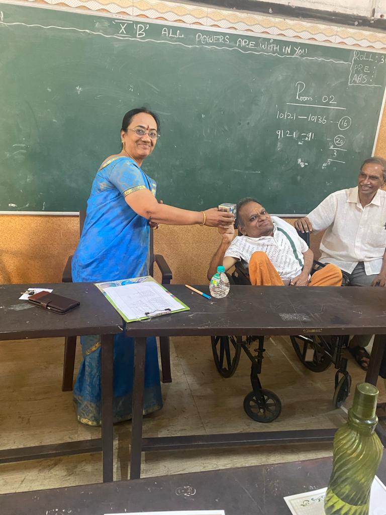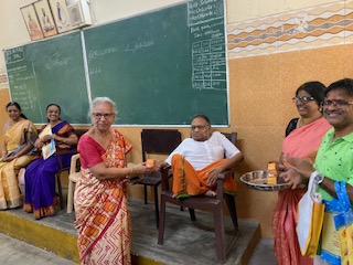 Sarada Vidyalaya Cheque handed over on behalf of Maithri Trust by Mrs Narasimhan.