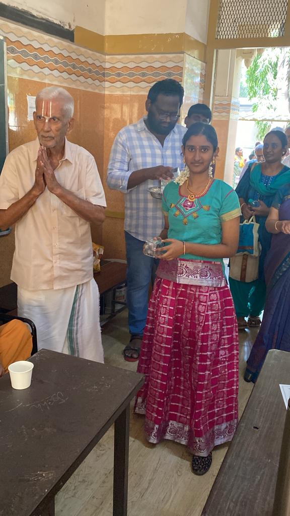FEB 2023Three buses, more that 275 students go to seek better concentration and devotion to coming exams as they are all given dress , food and writing materials to keep at the feet of Goddess Saraswathi in Chetti Punniam near Chinglepet city at 7 am and back by 2 pm on the third Sunday of February month. |