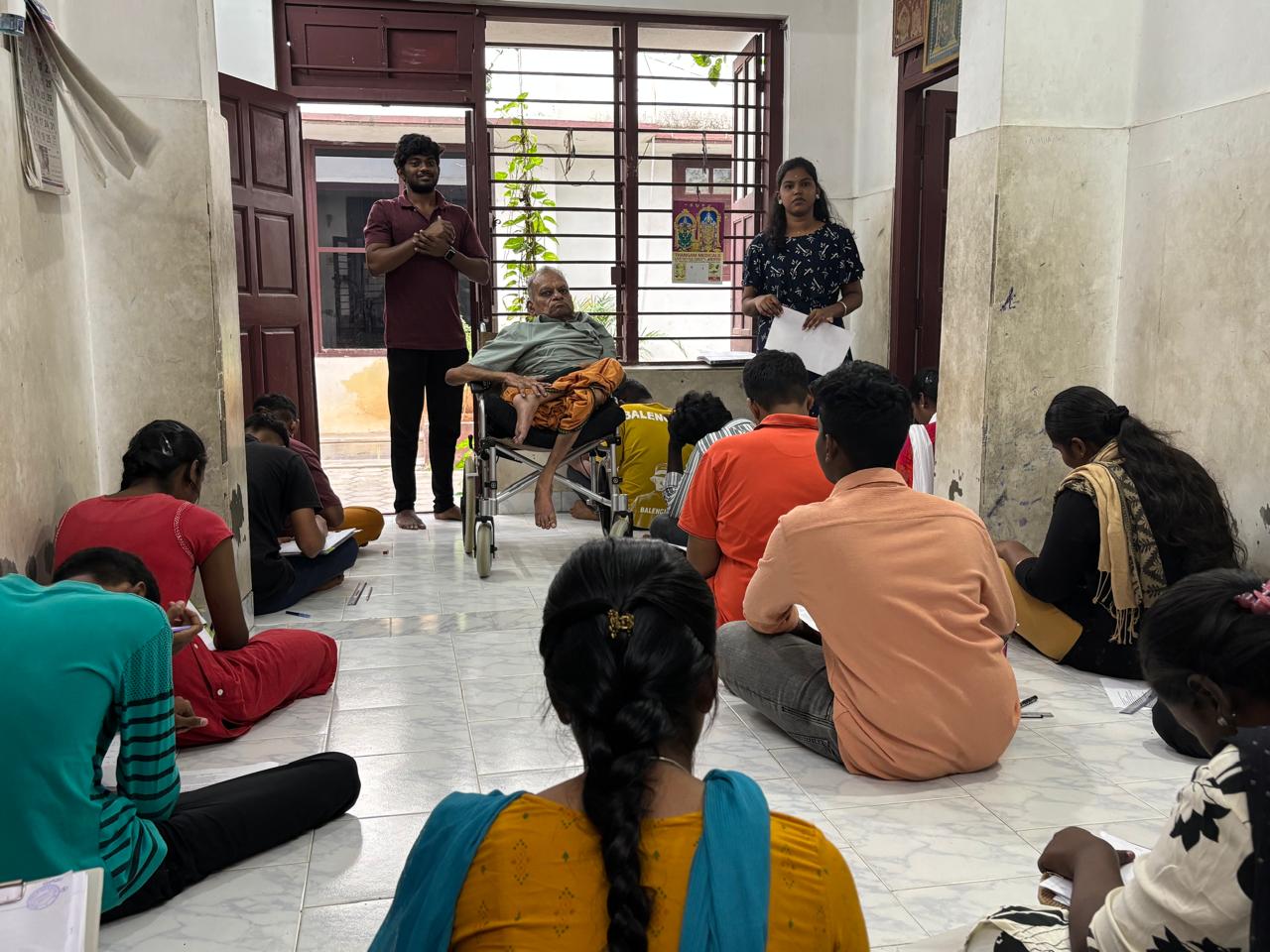 Old student Devi and her daughter Anusha S studying in 7th standard visited us recently. Devi studied M.Phil and is now working in Text Book society of Tamilnadu (Corporation) Government as Junior gazetted officer. Devi's parents Parvathi and D Krishnamurthy were poor and were given monthly medical help by Maithri.